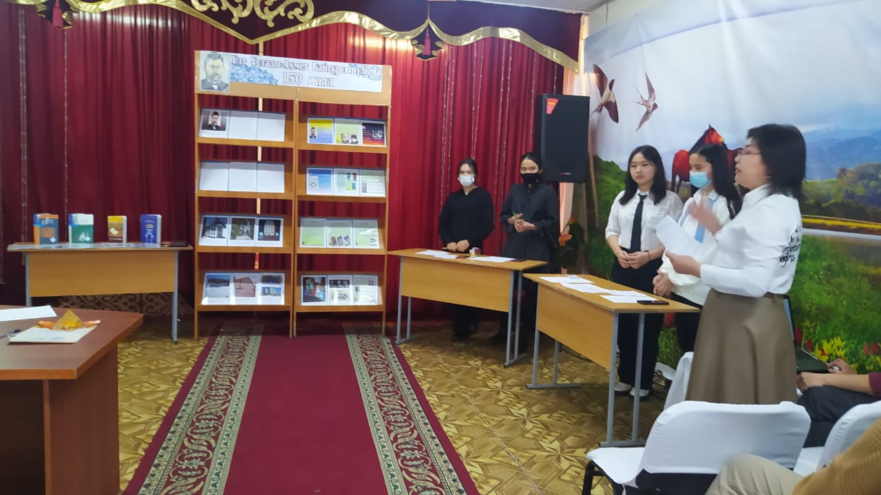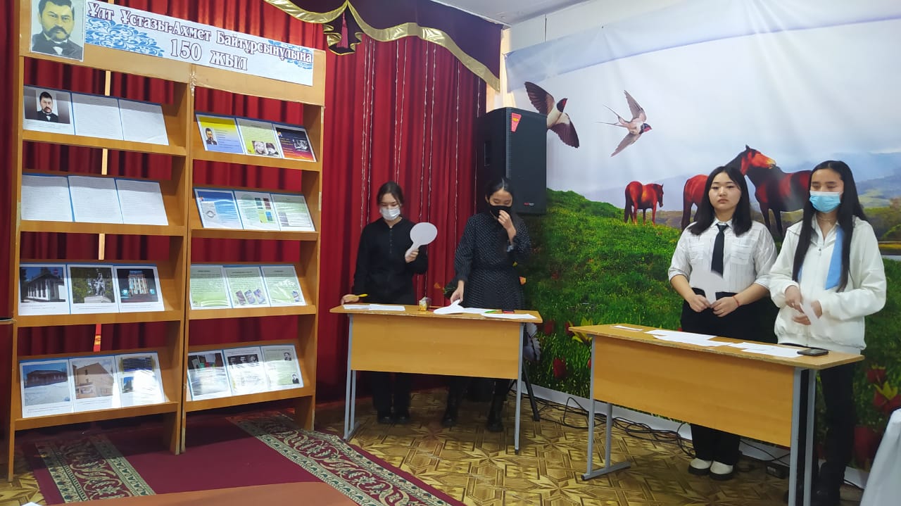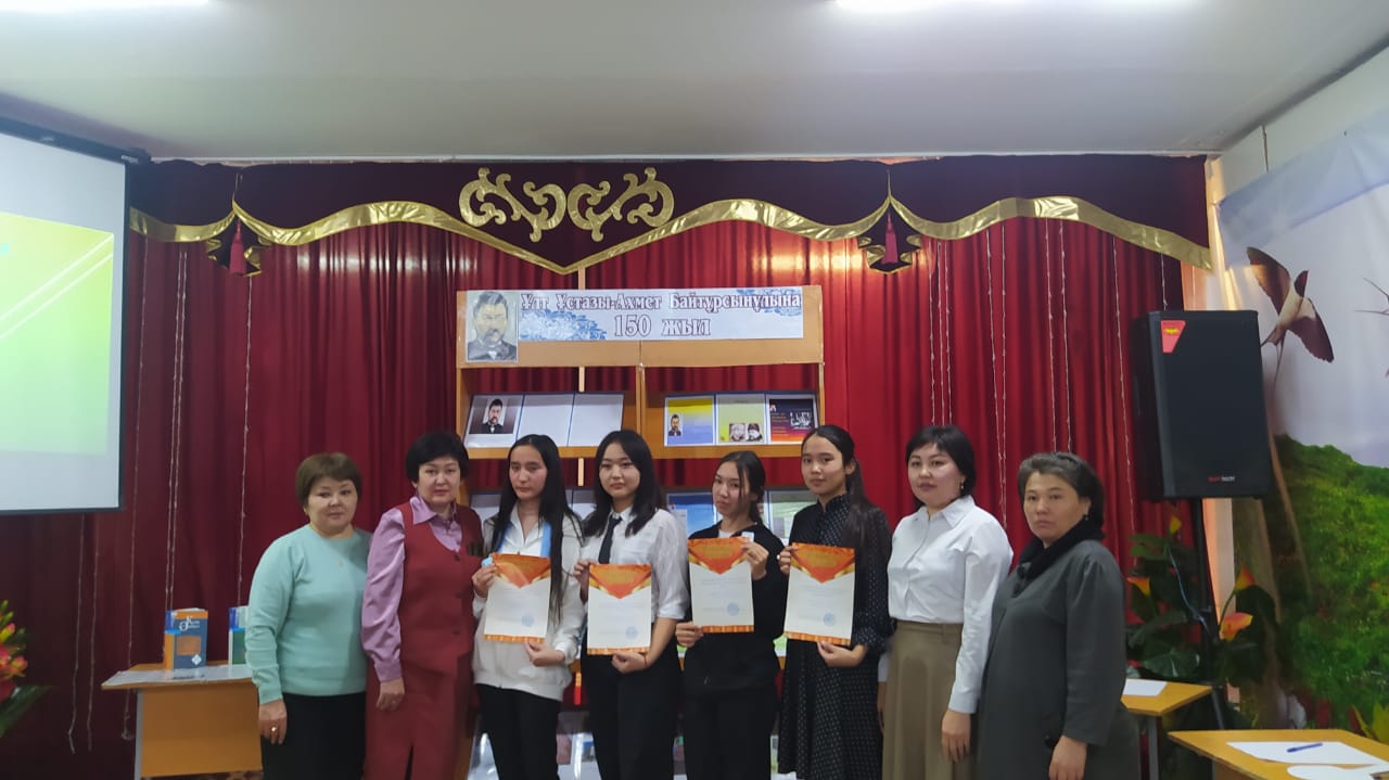 Ақпан айының 21 жұлдызында кітапхана меңгерушісі Кодасбаева Е және кітапханашы Мухамеджанова А. ұйымдастыруымен А.Байтұрсынұлының 150 жылдығана арналған сайыс өткізілді, сайыстың тақырыбы "Білім шыңы". Мақсаты: А. Байтұрсынұлының өмірі мен шығармашылығын, кітаптары мен ғылыми еңбектерін, келешек ұрпаққа үлгі ете отырып, өз елін сүйетін патриот болуға тәрбиелеу. Сайысқа I—курс білімалушылары қатысып білімдерін сынады. Тасмұратова Медина "Көшбасшы" номинациясы. Сапабекова Нұрай. "Ұшқыр ойлы", Абдибекова Гауһар "Лингвист", Дүйсенбі Айым "Білімпаз" номинациясына ие болды. Сайыс тартымды да қызықты өтті.