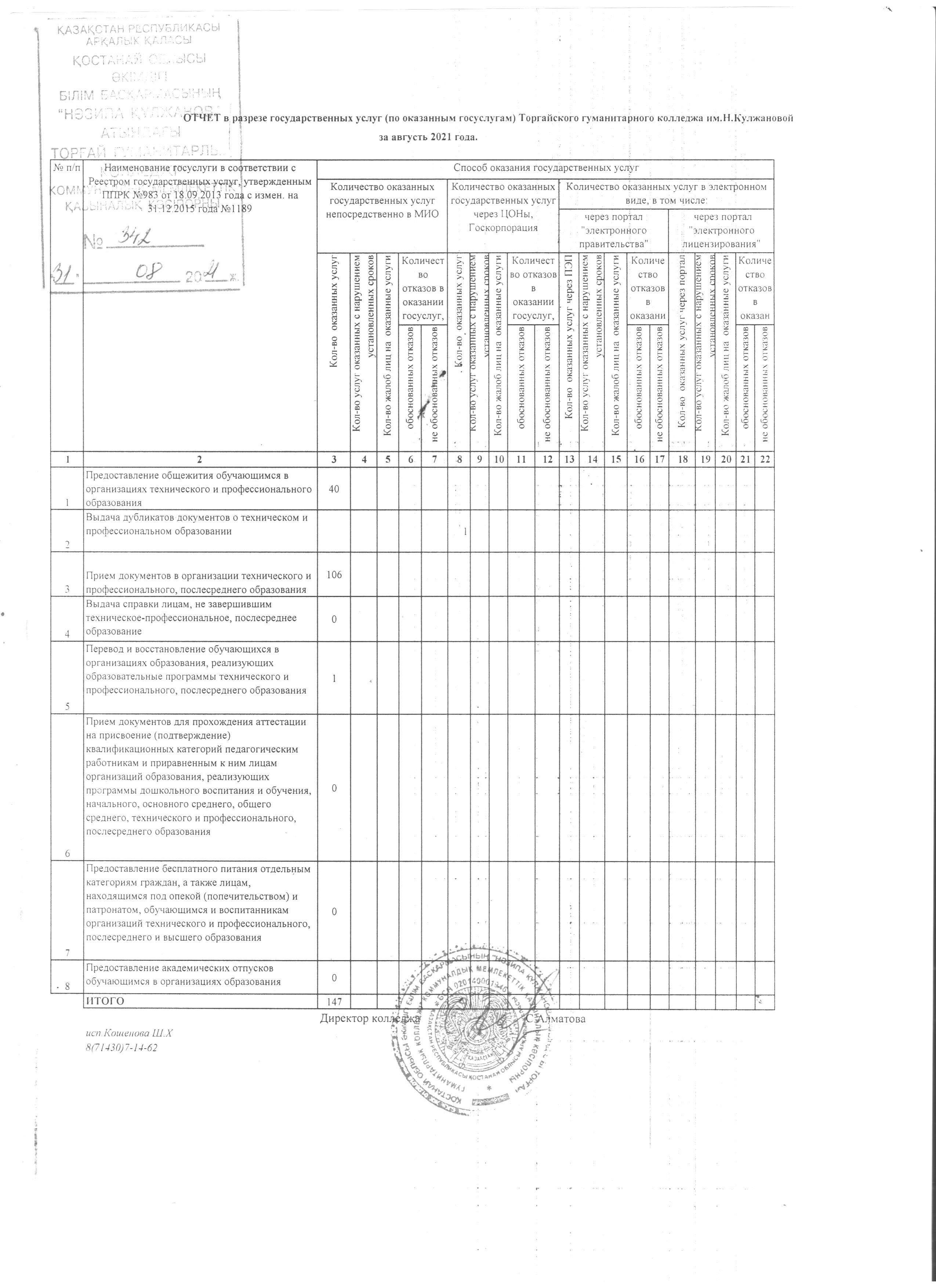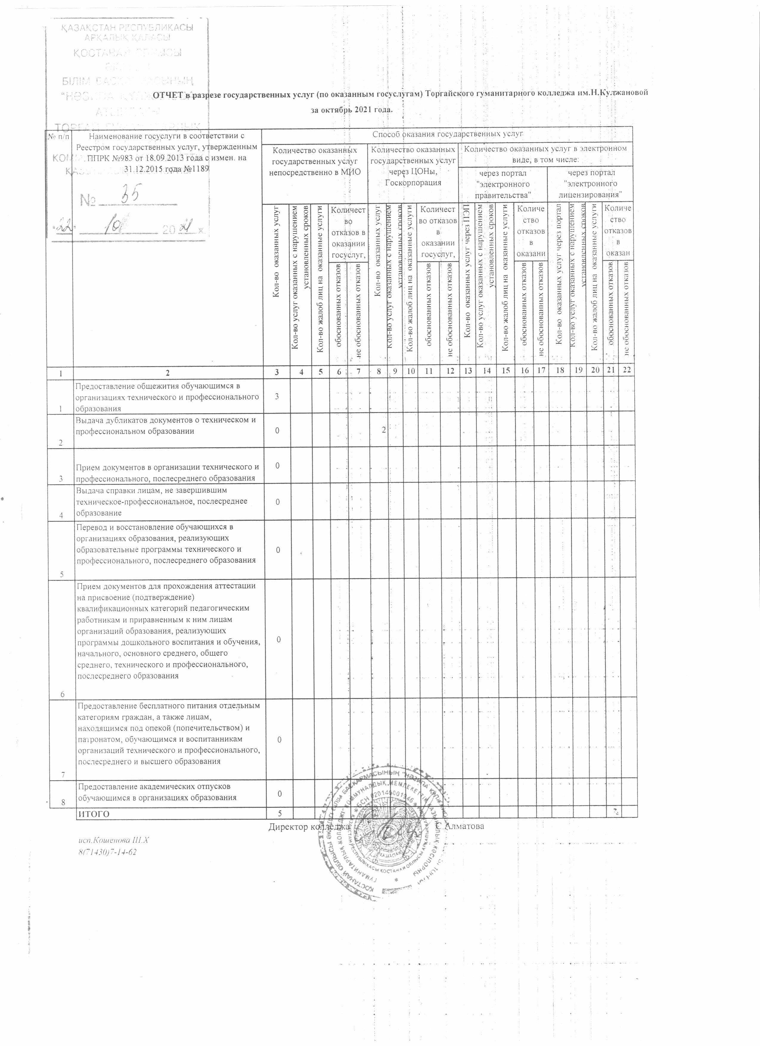 2021 ЖЫЛДЫҢ ҚАҢТАР-ҚАЗАН АЙЛАРЫ АРАСЫНДА КӨРСЕТІЛГЕН МЕМЛЕКЕТТІК ҚЫЗМЕТТЕР. ЖАЛПЫ КӨРСЕТІЛГЕН МЕМЛЕКЕТТІК ҚЫЗМЕТТЕР САНЫ — 639