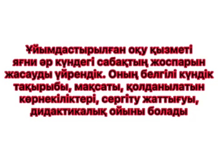 Білім алушылар өз мамандықтары бойынша перспективалық жоспардың жасалу жолдары, ұйымдастырылған оқу қызметінің бөлімдері,циклограмма,ата-аналар жиналысының жоспары, хаттамасы, көрнекіліктер, тәрбиешінің бір күндік жұмысының түрлерімен танысты. Күнделіктерін толтырып WhatsApp,EduPage бағдарламасы арқылы әдіскерге жіберді.