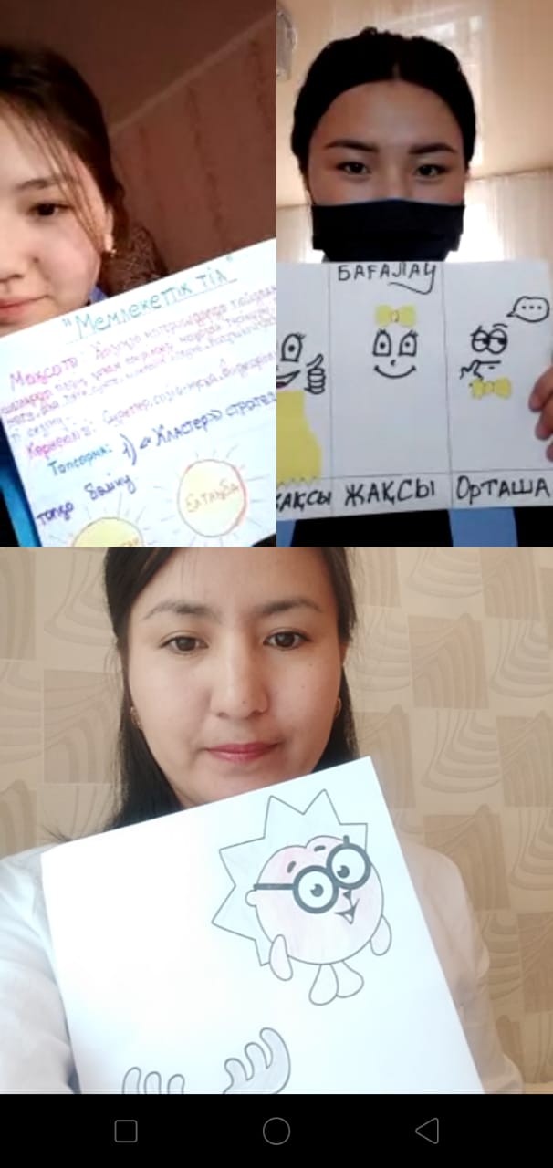Тәжірибе әдіскері Издибаева Дарига Муратовна. Қашықтан оқыту білімалушылар мен әдіскер арасында ешқандай қиындық туғызбады. Берілген тапсырмаларды да уақытында орындап, бірлесе жұмыстар жүргізілді.