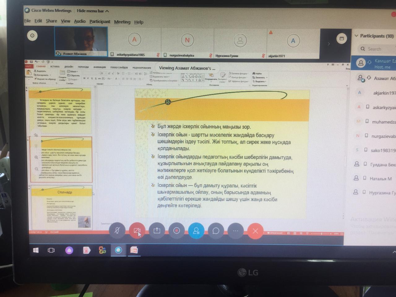 Онлайн-вебинарда оқытушыларымыз және балабақшадан келген әріптесіміз келесідей сүрақтар бойынша баяндамалар оқып, өз тәжірибелерімен алмасты.