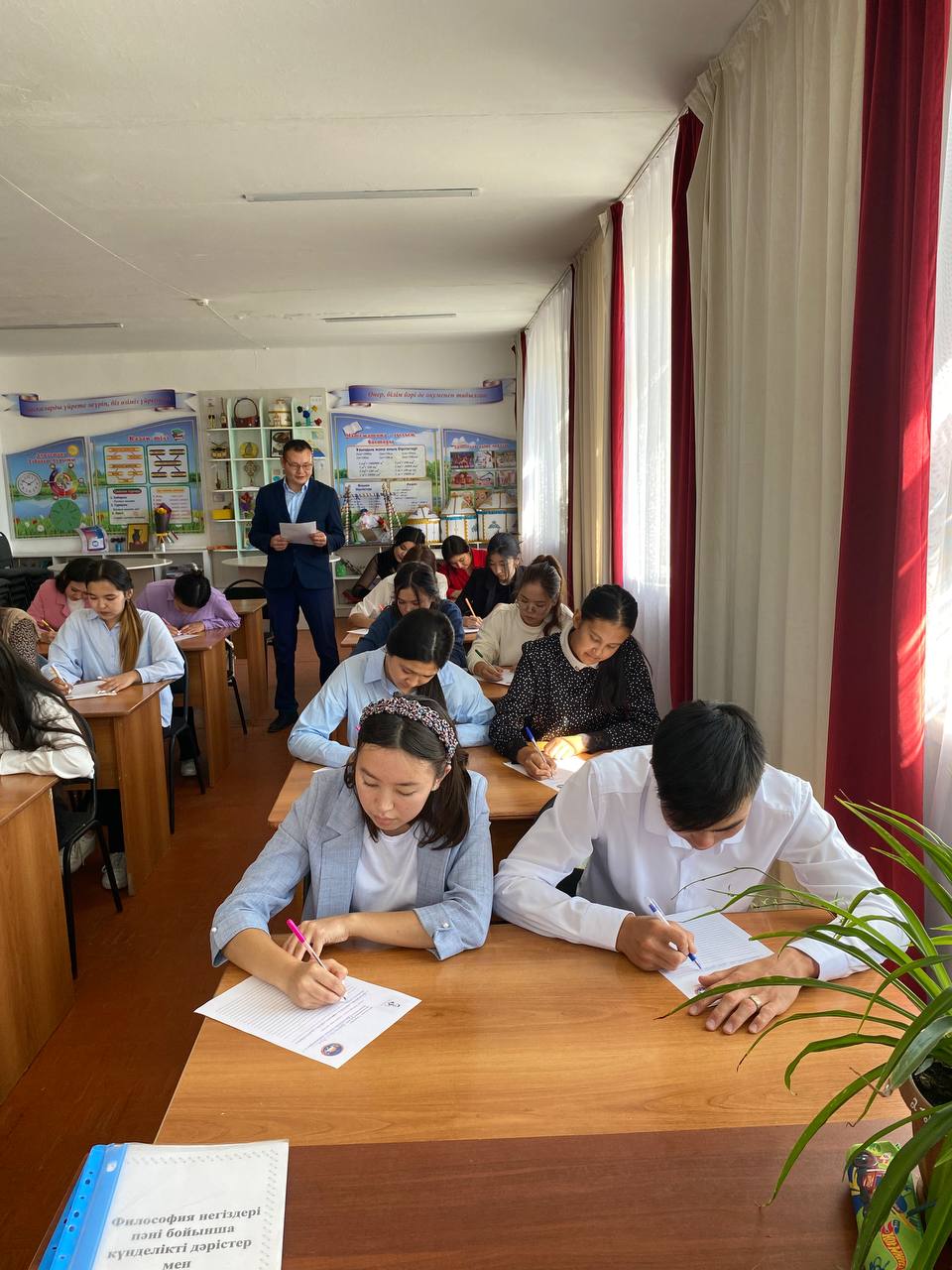 Диктантты колледждің қазақ тілі және әдебиет пәнінің оқытушысы Азамат Абжанов жоғарғы курс білім алушыларымен өткізді.