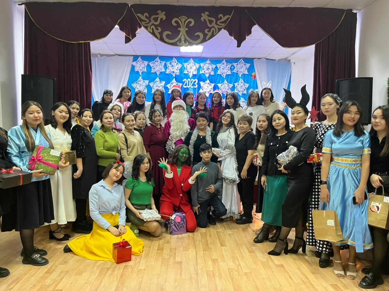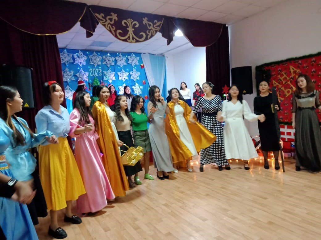 Жаңа жыл! Жаңа күн! Жаңа өмір бұл күн тіршіліктің барлық иелеріне жаңа үміт, қуаныш, ерекше махаббат сыйлайды. Сол махаббат, қуаныш пен үміт жыл бойы шаңырақта болсын. Мерекелік кештің қуанышқа толы көңілді сәттері жыл бойына әрбір шаңырақта сақталсын. Ескі жыл есіркеп, жаңа жыл жарылқасын. Жаңа жыл құтты болсын! Жатақхана студенттеріміздің дайындаған «Ертегілер еліне»көрермендерге кереметтей әсер қалдырды. Айналамды өздеріңдей керемет жандар қоршаған мен ең бақытты жанмын! Жаңа жылдың жылтыраған ойыншықтарындай жүздері жайнаған достарым мәңгі жанымда болсын. Достар мереке құтты болсын, дастарханымыз мол болсын, көңіліміз даладағы аппақ қардай таза болсын! Ақша қардың игі тілегінен кейін «Жаңа жыл»әнімен МД-12 тобының студенті Әділбек Ақбота орындады. Ақша қар қызықты ойындар ұйымдастырып, сыйлықтар таратты. Аяз ата дорбасынан тәтті кәмпитер үлестірілді. Мерекелік құттықтау сөзі колледж тәрбие ісінің меңгерушісі Г.Қ. Оразоваға берілдщі. Қортынды сөзді жатақхана тәрбиешісі Ж.Х.Бирмакановаға беріліп ат салысқан студенттеріміз марапатталды.