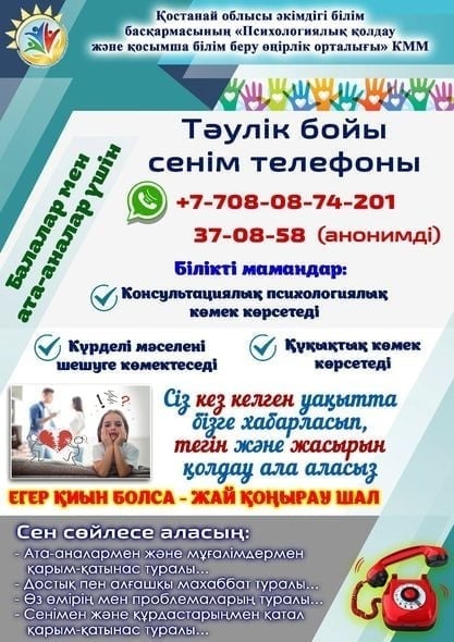 "Егер қиын болса-жай ғана қонырау шал" сенім телефонының жұмысы туралы және КММ "Психологиялық қолдау және қосымша білім берудің өнірлік орталығы" КММ қызметі туралы ақпарттық - түсіндіру акциясы жүргізілді.