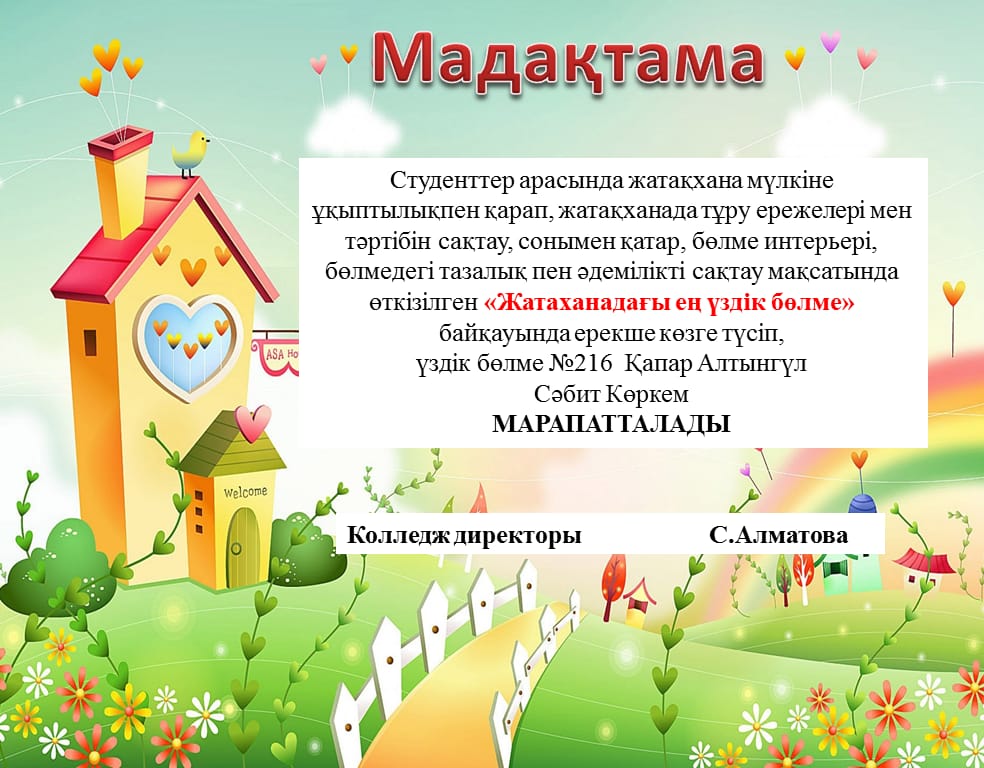 Байқау нәтижелері бойынша "Үздік бөлме", "Креативті бөлме"
