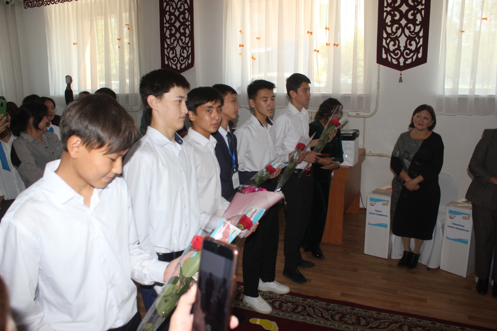 Кеш соңында қонақтарға колледж кәсіподақ ұйымының атынан естелік сыйлықтар, алғыс хат пен шоқ гүлдер ұсынылды.