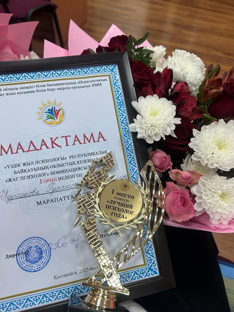 2023 жылдың 13 желтоқсан күні Қостанай облысы әкімдігі білім басқармасының "Психологиялық қолдау және қосымша білім беру өңірлік орталығы"КММ "Үздік жыл психологы" республикалық байқауының облыстық кезенінде "Жас психолог" номинациясы бойынша І орын иеленген әріптесіміз Нуркенова Гулмира Дауылбайқызы. Республикалық кезеңіне жолдама алды.