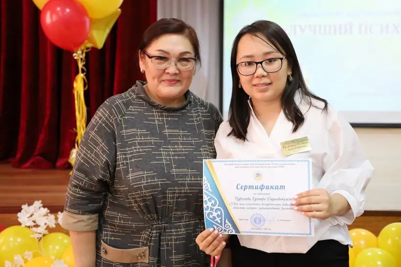 "Үздік жыл психологы" "Жас психолог" номинациясы бойынша І орын иеленген Нуркенова Гулмира Дауылбайқызы