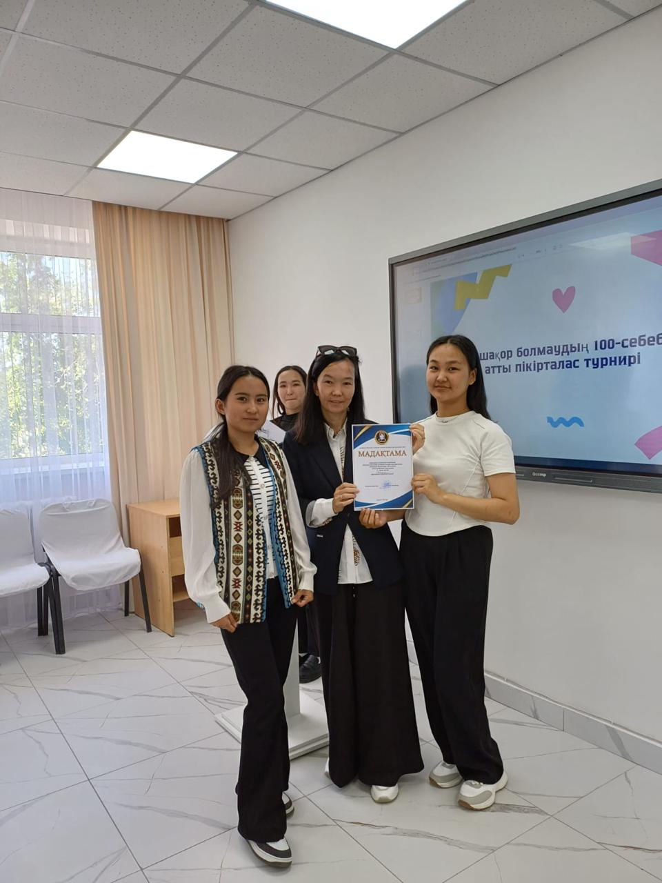 Халықаралық нашақорлыққа қарсы күрес күніне орайластырылған айлық жоспары шеңберінде 04.06.24ж күні колледж студенттеріне «Өркениет» пікірталас клубының ұйымдастыруымен «Нашақор болмаудың 100 себебі» атты пікірталас турнирі өткізілді. Пікірталас Британдық форматта өтті. Шараға БМ-12 «Фракция фракциясы», БМ-22 «Втораштар», МД-11 «Бірлік тобы», ДМ-12 «Намыс» топтарынан жасақталған 4 фракция қатысты. Шараға төрелікті «Өркениет» пікірталас клубының төрайымы, қалалық, облыстық пікірталас турнирлерінің жүлдегері Оспан Аружан жасады. Пікірталас қарары: Бп: жастар арасынан наркалогияның тез дамуына интернет желісі кінәлі деп есептейді. Пікірталас қорытындысы бойынша БМ-11 тобы үздік деп танылды. 2 ранг ДМ-12 тобы, 3 ранг БМ-22 тобы иеленсе 4 ранг МД-11 тобы қанжығалады. Пікірталастың «Үздік спикер» мәртебесі Асанбай Гүлназымға бұйырды. Турнир студенттердің сөйлеу мәдениеті мен тақырып төңірегіндегі білімдерін салмақтады. Қатысушылар ойларын ашық, еркін айтуымен ерекшеленді. Сөз сараптауы, ой таластыру мәдениеті арқылы жоғары ойын деңгейін көрсетті. .