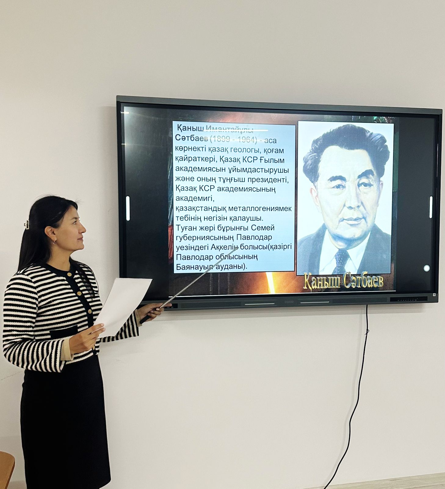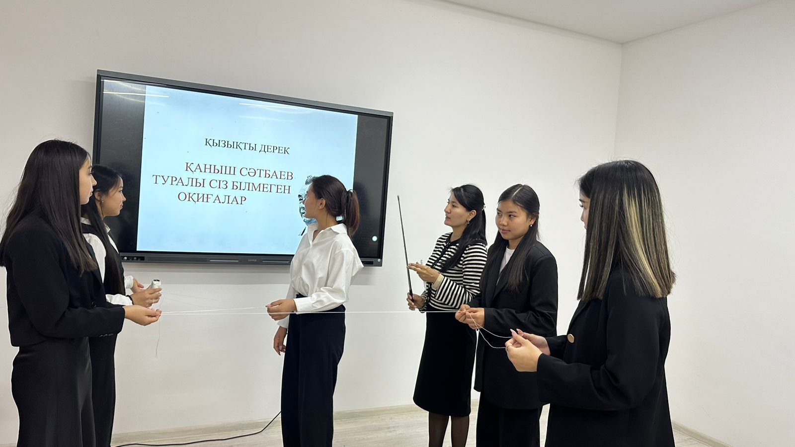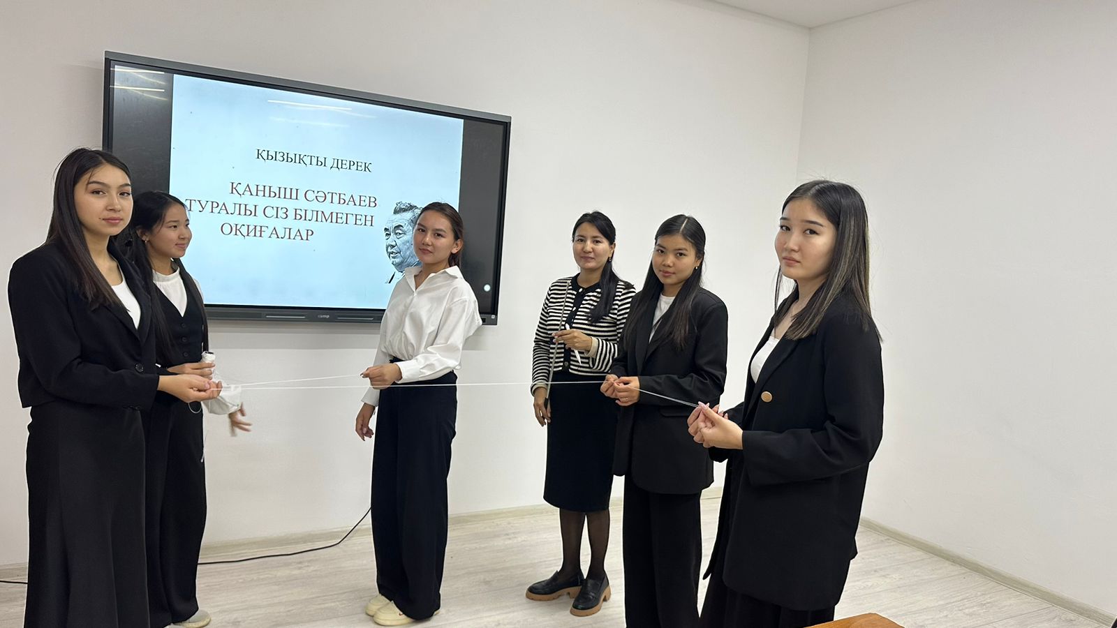 Қ,Сәтбаев туралы қызықты деректерді " өрмекші торы" әдісі арқылы ашу тапсырмасын студенттер қызығушылықпен орындады. Танымдық сағаттар студенттер қазақ академигінің біз білмейтін оқиғалармен бөлісті. Шараны ұйымдастырып өткізуші колледж оқытушысы Издибаева Дариға Муратовна .