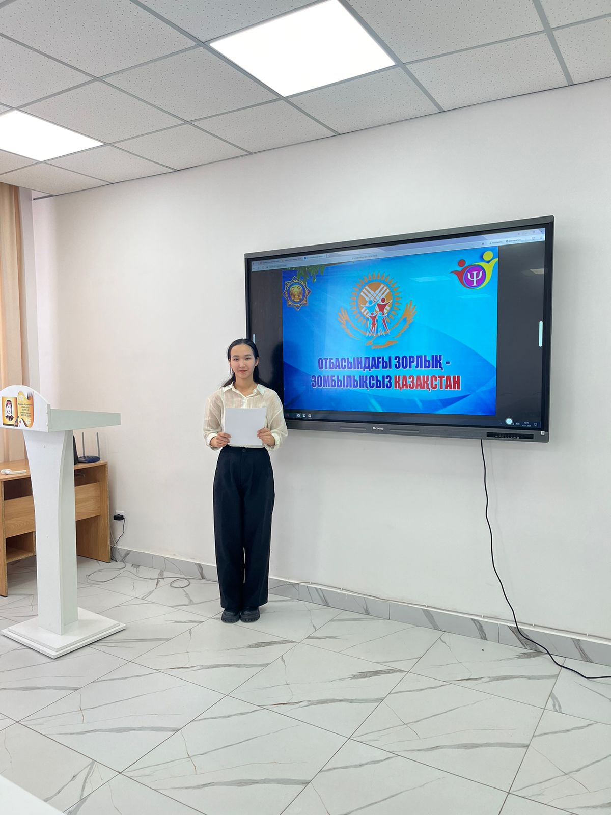 "Зорлық-зомбылықсыз 16 күн" халықаралық акциясы жүзеге асыру бойынша, Арқалық қаласы полиция басқармасымен бірлескен жоспарға сәйкес колледжде "Өркениет" дебат клубының белсенділерінің ұйымдастыруымен «Зорлық зомбылықсыз Қазақстан»тақырыбында пікірталас турнирі өткізілді. Турнирдің басты мақсаты: қоғамда орын алып отырған тұрмыстық зорлық-зомбылық жайлы халықты ақпараттандыру. Құқықбұзушылықтың алдын алу әрекеттерінен хабардар ету. Дебат турнирі алаңында фракциялар өз ойларын ашық ортаға салып пікірталасты. Жеңімпаздар анықталып, жүлдегерлер дипломдармен марапатталды. Турнирдің үздік фракциялары 1 орын БМ 13, 2 орын БМ-12, үздік спикерлер: Сагимбаева Тоймереке БМ-13 тобы, Әбдіғалық Назгүл марапатталды.