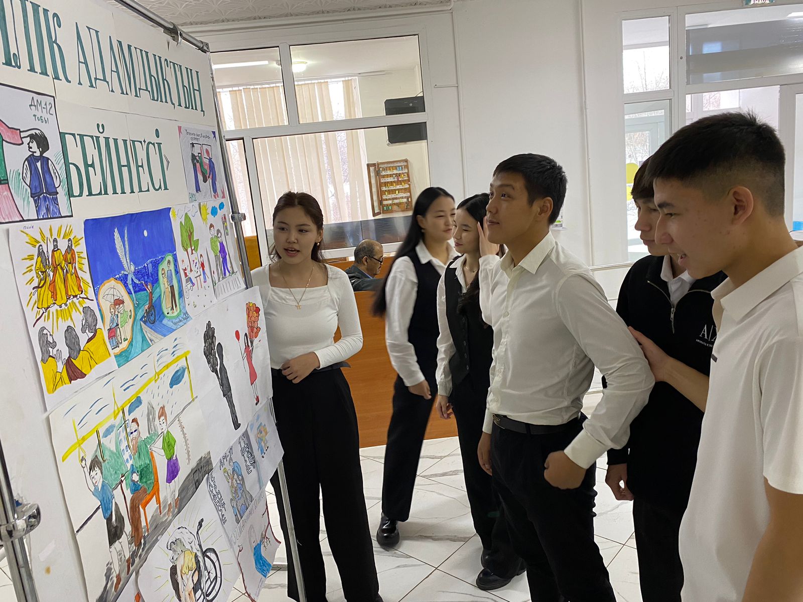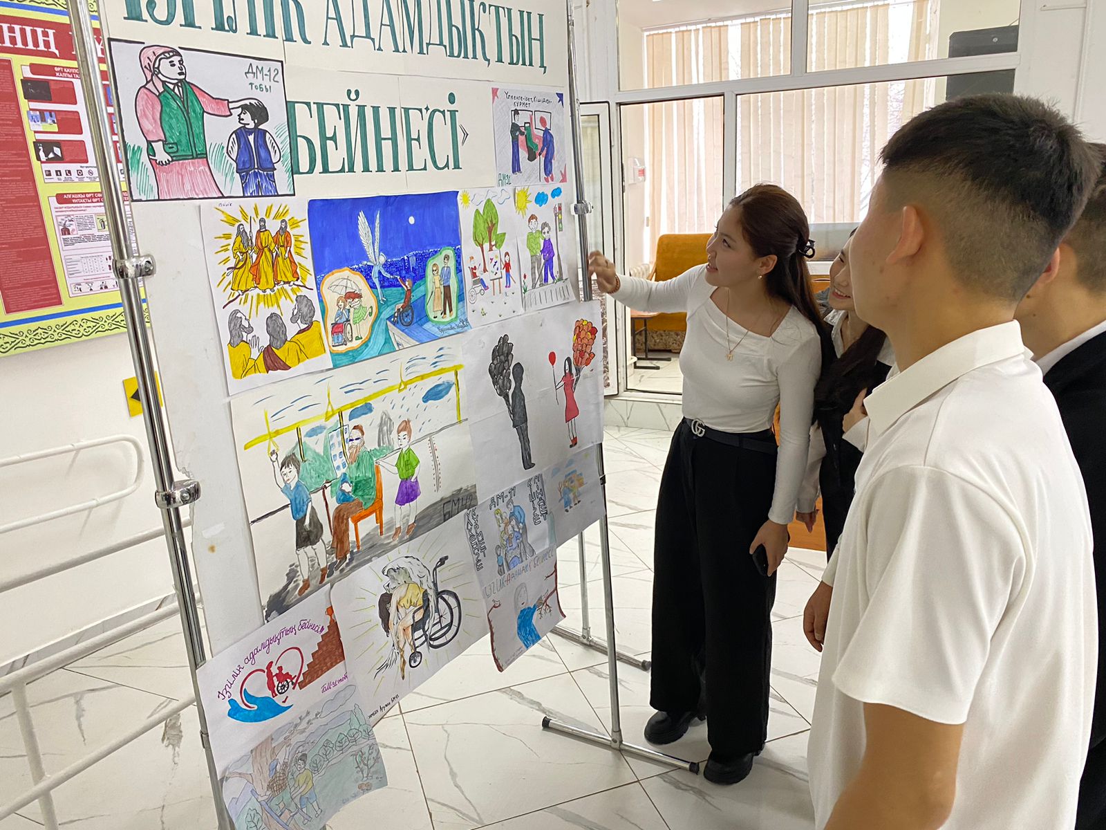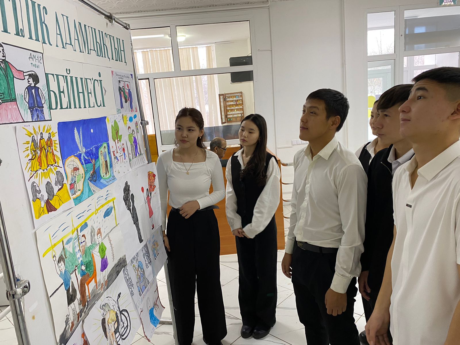 V Хабардар болу онкүндігі іс шаралар шеңберінде, инклюзивті мәдениетті және мүгедектігі бар адамдарға толерантты көзқарасты қалыптастыру мақсатында «Ізгілік адамдықтың бейнесі» атты суреттер, плакаттар байқауы ұйымдастырылып өткізілді. Шараға колледж барлық топтар қатысты. 30 ға жуық жұмыстың ішінен үздік деп танылған туындылар көрмеге ілінді. Байқау нәтижесі бойынша Бас жүлде - МД - 31, 1 орын ДМ-11,2 орын БМ-31, 3 орын -БМ-43 топтары иеленді. Суреттердің мазмұны ізгілікке, қайырымдылыққа, адамгершілікке негізделген. Жұмыстарды сапқа салып, үздіктерін анықтаған колледж қызметкерлері қатырынан жасақталған шығармашылық топ жұмыс жасады.