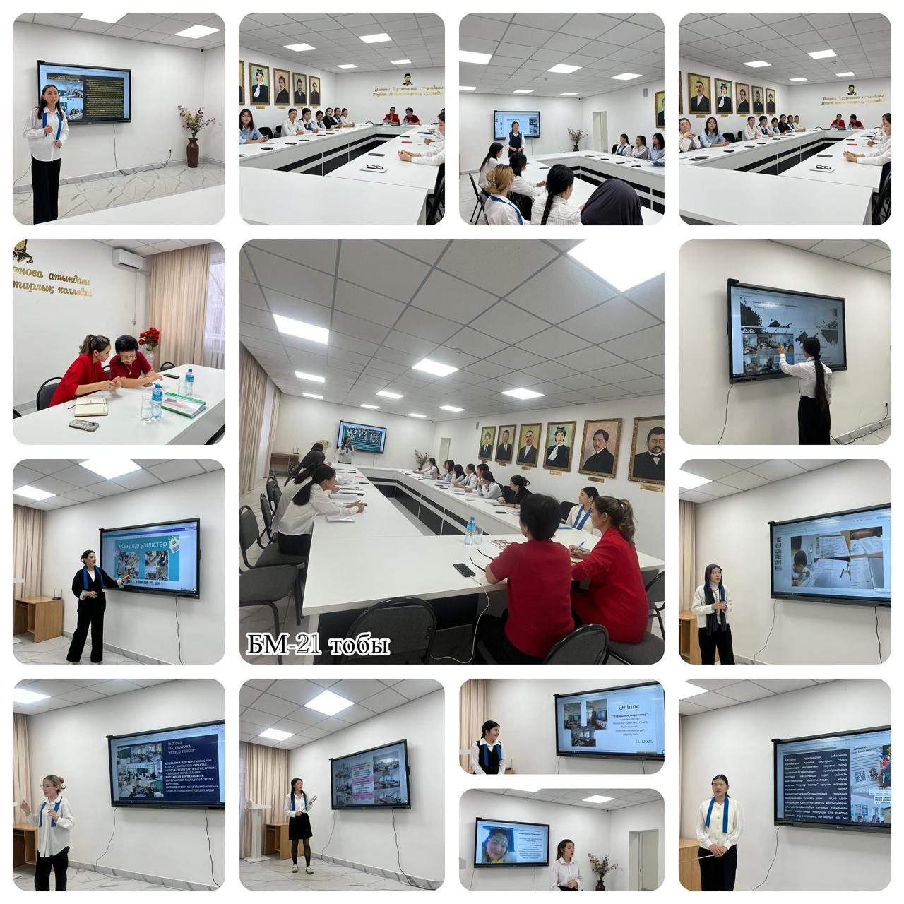 2025 жылдың 04 желтоқсан күні «Бастауыш білім беру педагогикасы мен әдістемесі» мамандығының 2 курс БМ-21 тобының білім алушылары Кейкі батыр атындағы № 4 жалпы білім беретін мектебінде өткен педагогикалық тәжірибесін қорғады. Әдіскер Ақылбекова Луиза Бекетовна ұйымдастырды. Білім алушылар қорытынды тәжірибеде ашық сабақтары мен сыныптан тыс өткізген іс-шараларын, тәрбие сағаттарын, көңілді үзілістерін және дайындаған құжаттарын слайд арқылы қорғап, бір-бірімен тәжірибе алмасты.