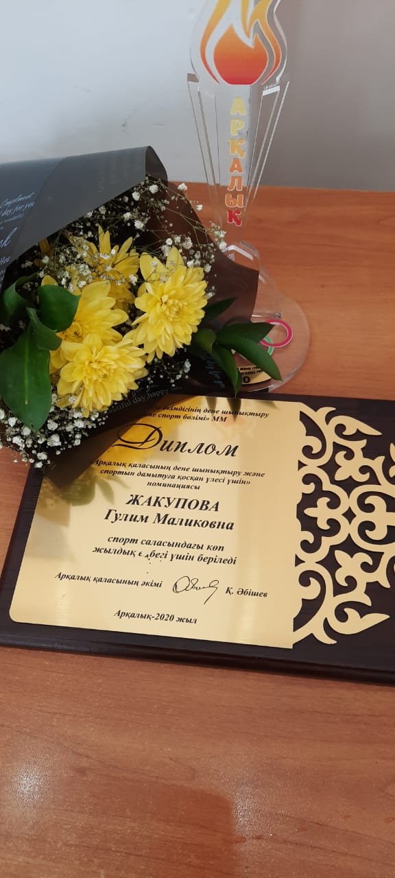 2020 жылы 28 қазанда 2020 жылдың қорытындысы бойынша «Арқалық қаласы әкімдігінің дене шынықтыру және спорт бөлімі» ММ спорт саласындағы жоғары жетістіктерге қол жеткізген спортшыларға, жаттықтырушылар мен осы саланың қызметкерлеріне қала әкімінің атынан дипломдар табыс етілді.