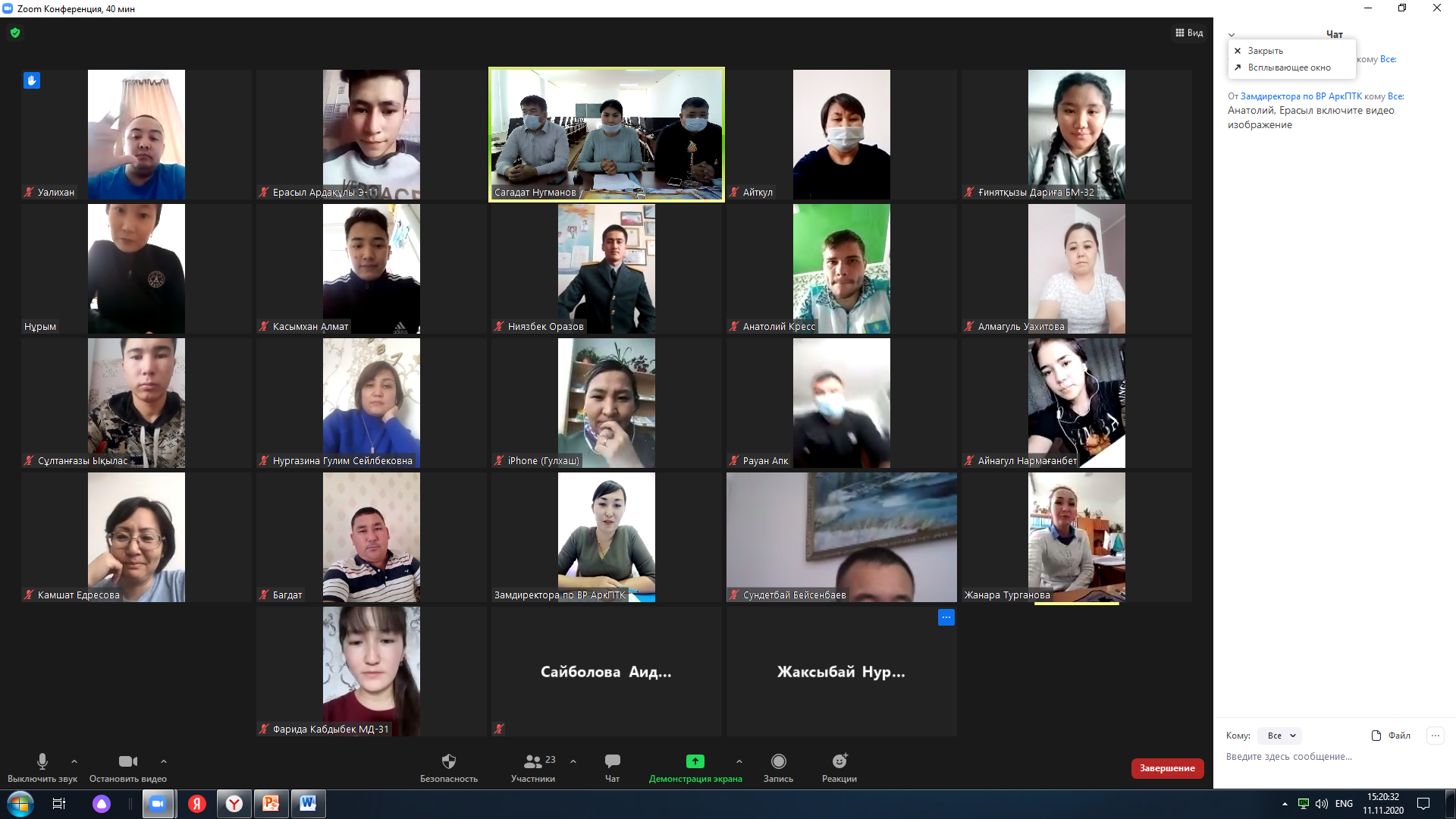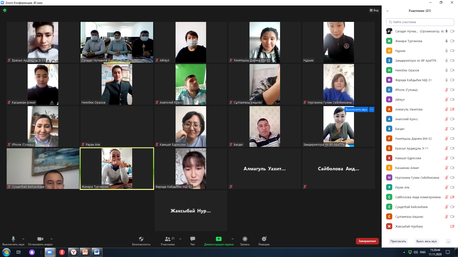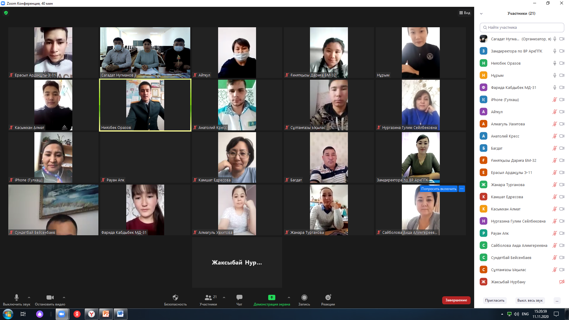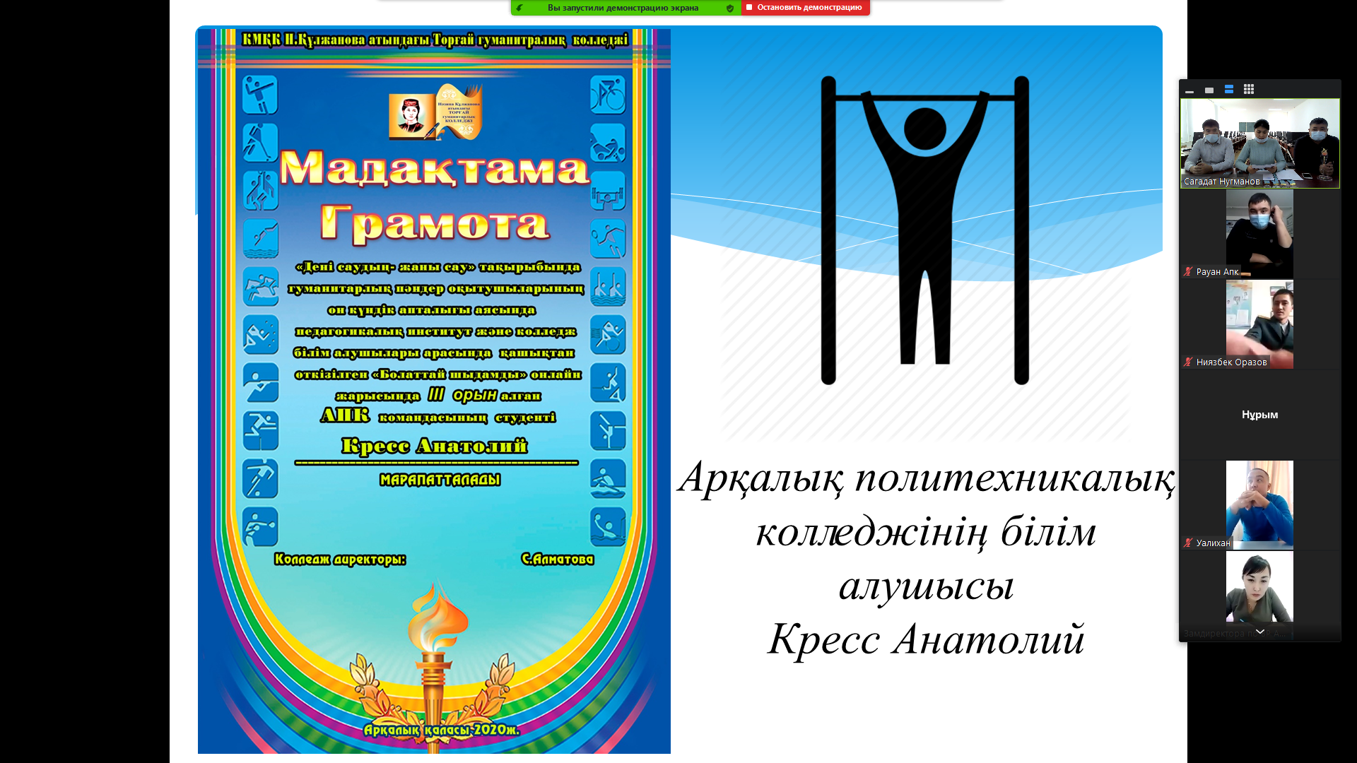 Марапаттау рәсімі Zoom платформасы арқылы өтті. Онлайн жарыс жеңімпаздары мен жүлдегер иелерін колледж грамоталары мен және медальдармен марапатталды.