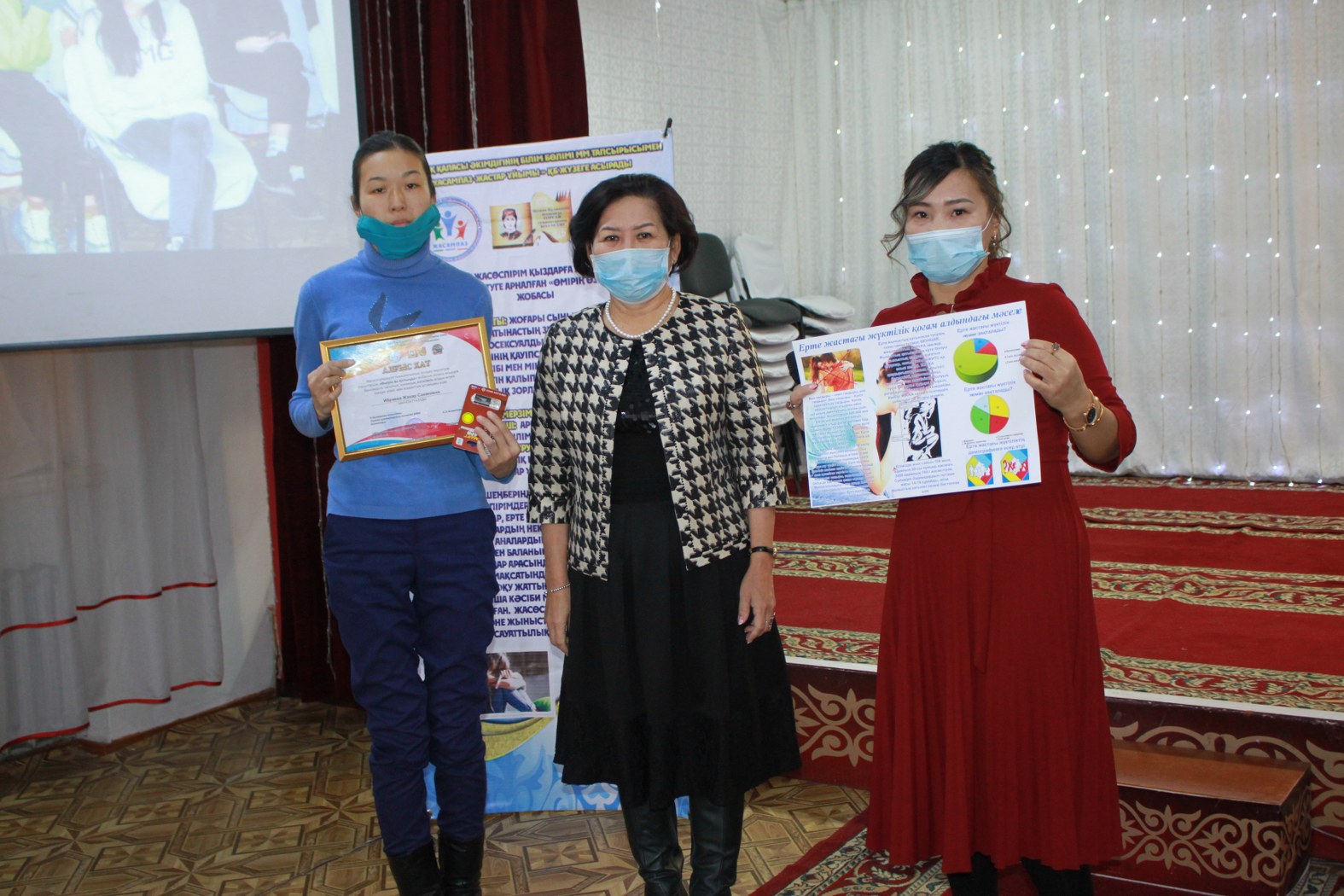 - «Біз бақытты өмірді таңдаймыз» жоба шеңберінде белсенділік танытқан мақсатты топ мүшелерін салтанатты марапаттау