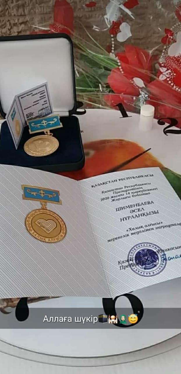 Қазақстан Республикасы Президентінің 2020 жылғы 14 қыркүйектегі жарлығы бойынша «Халық алғысы» медалімен ел сенімін ақтаған колледжіміздің БМ-31 тобының студенті Сәтбай Айзат Сәтбайқызы, МД-31 тобының студенті Шименбаева Әсел Нұрланқызы марапатталды. Білімді, жан-жақты студенттеріміз көп болсын. Қазақстан Республикасының тәуелсіздік қарсаңында студенттеріміздің алып отырған марапаты құтты болсын.