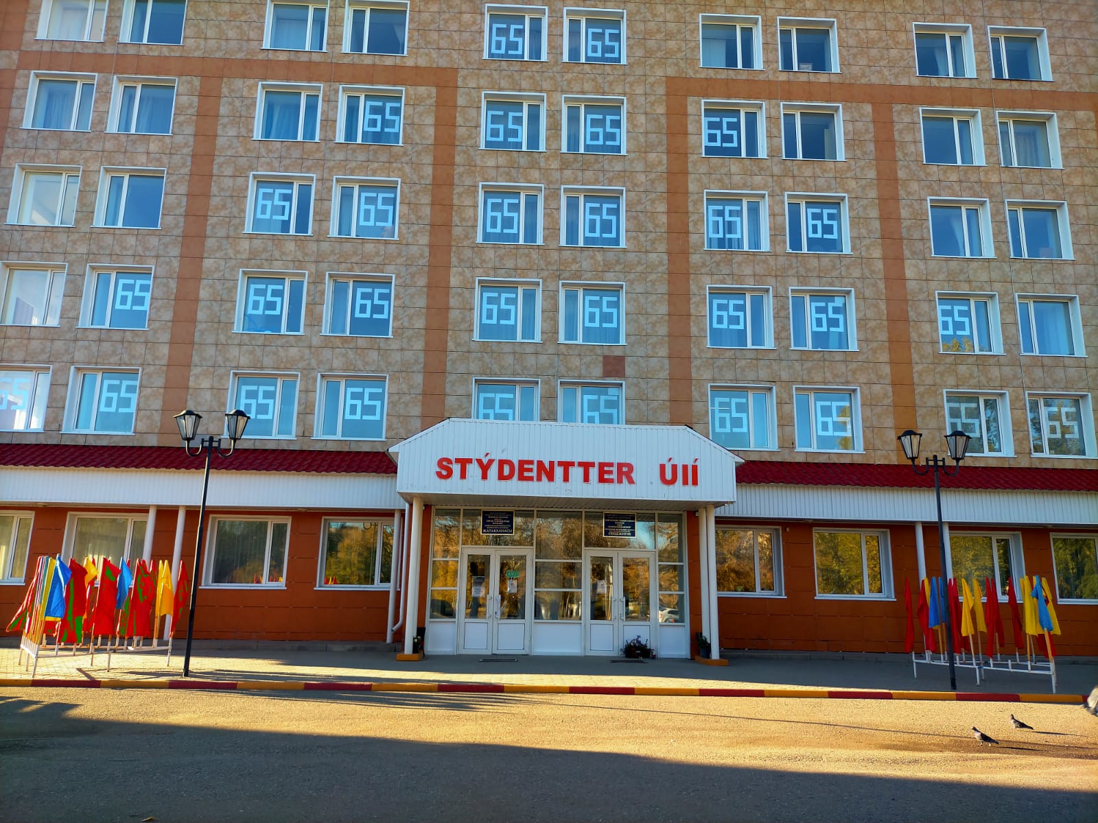 Жатақхана тұрғындарының тартуы ерекше көзге түсті. Колледжіміздің жатақхана терезелеріне 65 деген үлкен жазулар ілінді.