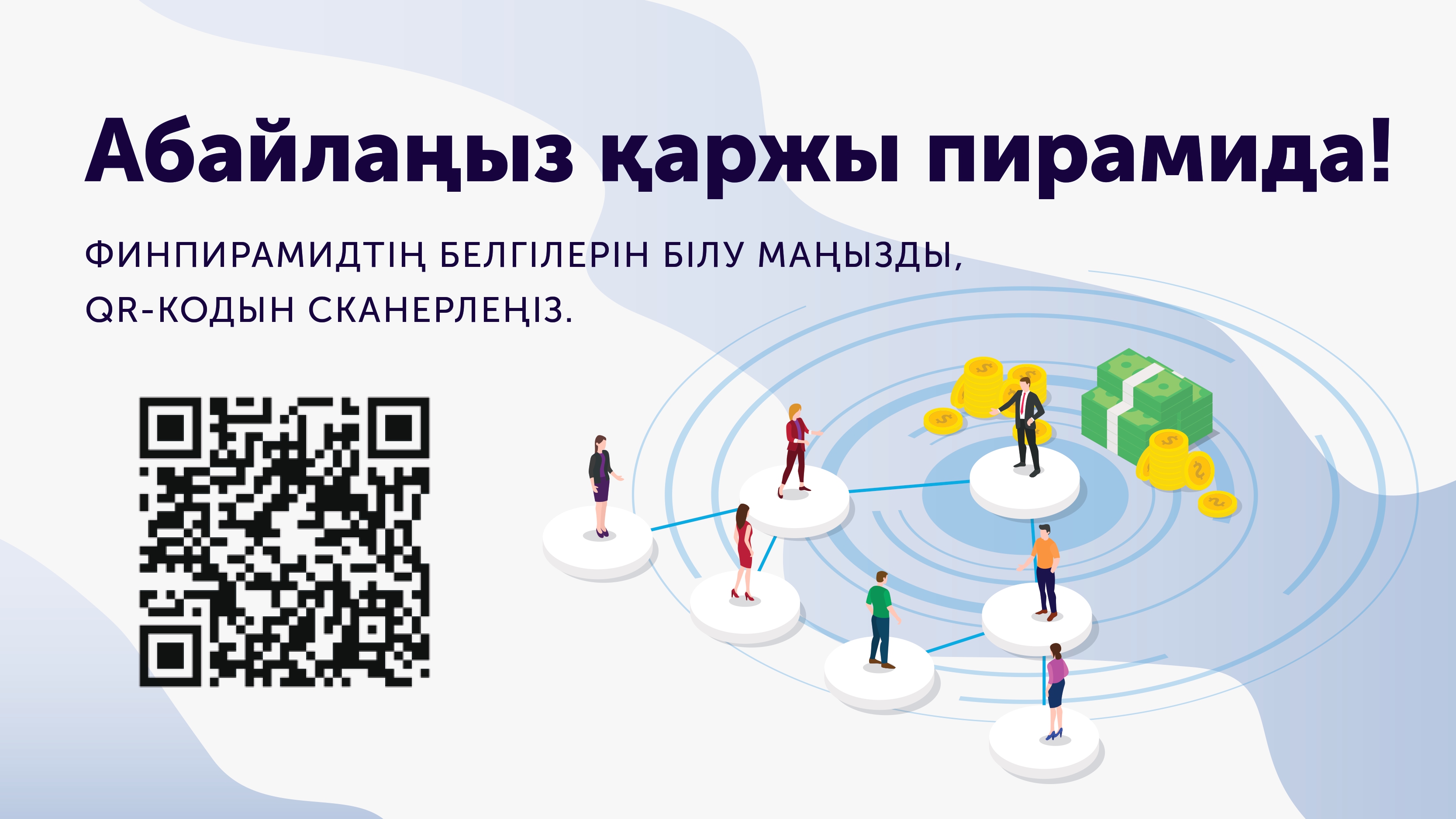 Халықтың сауаттылығын арттыру және құқық бұзушылықтардың алдын алу мақсатында QR-код арқылы қаржы пирамидаларының 10 белгісі туралы роликті қарау ұсынылады.