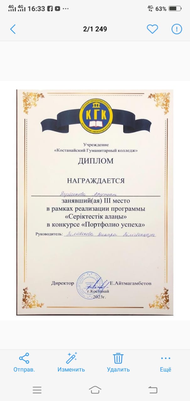 Біздің колледждің «Мектепке дейінгі тәрбие және оқыту» мамандығының білім алушылары Дүйсекова Аружан 3 орын Дипломмен, жетекшісі Білісбекова Динара Білісбекқызы, Әлмен Қуанышгүл Сертификатпен, жетекшісі Хасенова Зайгул Хасеновна иеленді.