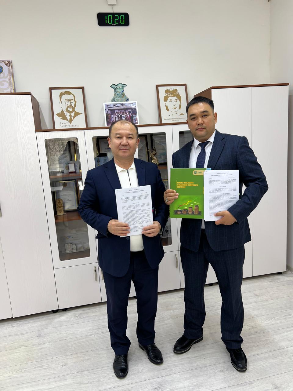 Н.Құлжанова атындағы Торғай гуманитарлық колледжі Әлеуметтік серіктестіктермен ынтымақтастықты кеңейту мақсатында 2025 - 2026 оқу жылына Астана қаласының «EsiI University» Университетімен бірлесіп білім беру қызметі саласындағы ынтымақтастық туралы Меморандум жасалды. Меморандумға Университет Ректоры Таубаев Аяпберген Алданайұлы мен колледж директоры Мамбетов Руслан Еликбаевич екі жақты қол қойылды, Меморандум аясында ынтымақтастықтың мәні болып табылатын оқу жоспарларын синхрондау, кеңес беру, дәрістер оқу, кадрларды қайта даярлау курстарын ұйымдастыру, ғылыми зерттеу және қолданбалы жұмыстарды орындау үшін мердігерлік шарттарды рәсімдеу және жасасу, бірлескен іс - шаралар, конференциялар, дөңгелек үстелдер, көрмелер, жәрмеңкелер басқа да іс - шараларды ұйымдастыруға және өткізуге екінші Тарапты тартуға бастамашылдық жасау жұмыстары қарастырылды.