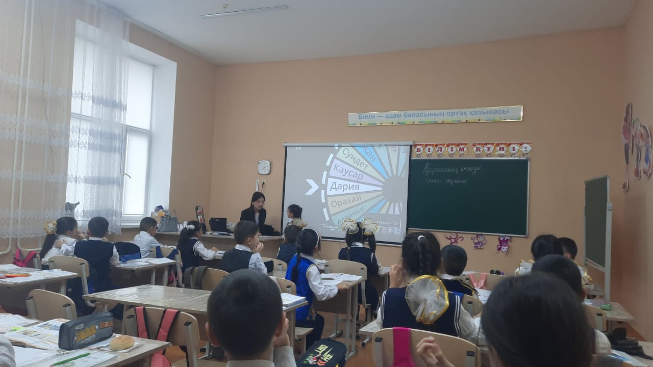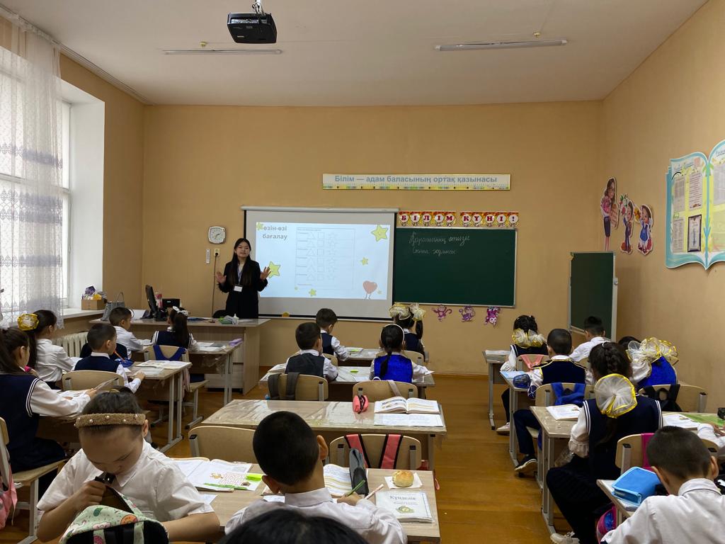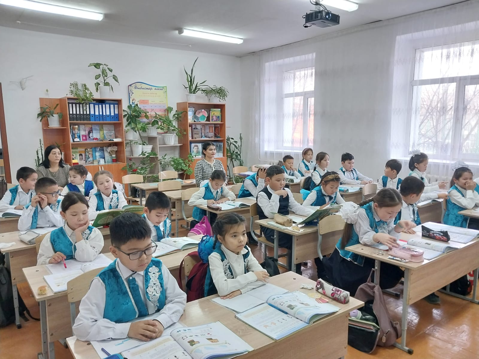 Н.Құлжанова атындағы Торғай гуманитарлық колледжінің «Бастауыш білім беру педагогикасы мен әдістемесі» мамандығының 3 курс БМ-33 тобы қаламыздағы Кейкі батыр атындағы № 4 жалпы білім беретін мектебінде Байқау тәжірибесінен кесте бойынша сабақ беруде. Әдіскер Назарова Г.К. білім алушылардың сабақтарына қатынасуда.
