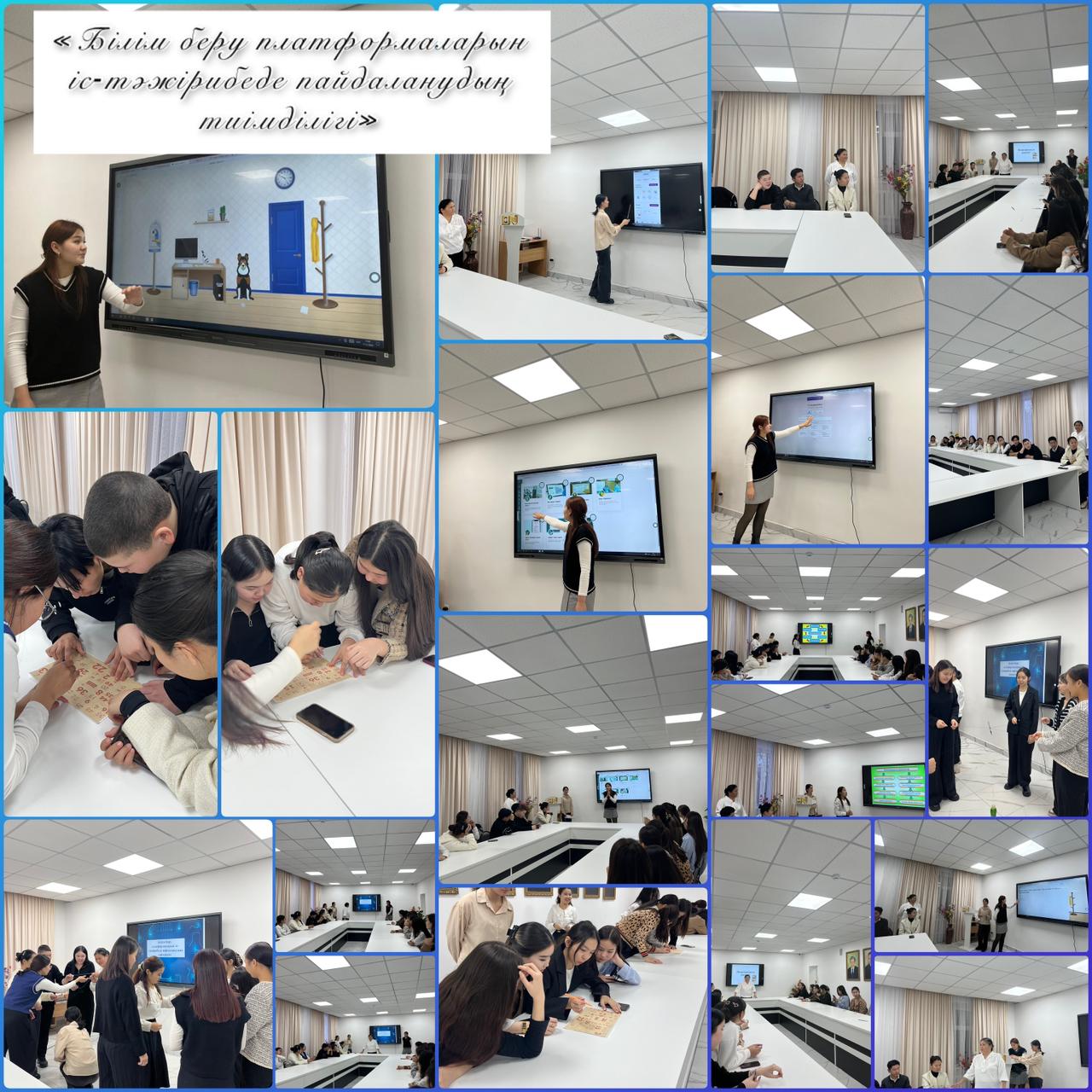 Н. Құлжанова атындағы Торғай гуманитарлық колледжінің практика әдіскері Абдилдина Кулаш Султановна «Бастауыш білім беру педагогикасы мен әдістемесі» мамандығының 1 курс БМ - 12, БМ - 13 топтарының білім алушыларына «Білім беру платформаларын іс - тәжірибеде пайдаланудың тиімділігі» тақырыбында тәжірибе алмасу дөңгелек үстелін ұйымдастырды.