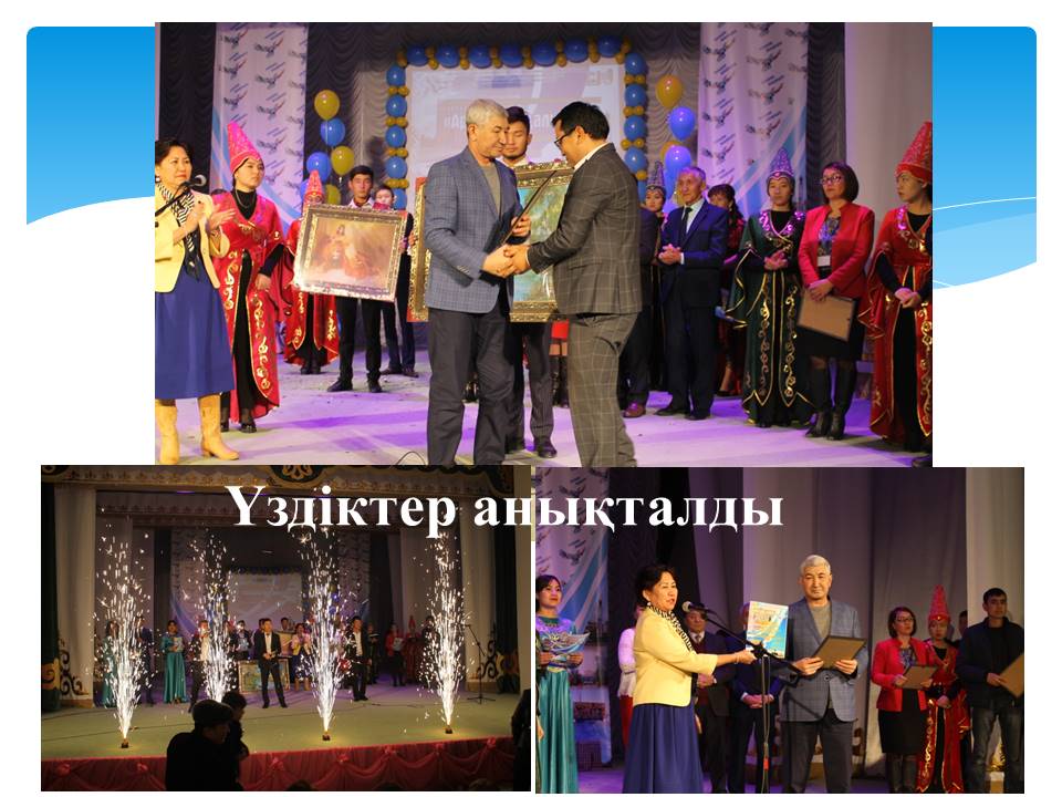 10 слайд (награждение) Үздік шығармашылық ұжымдар анықталып, естелік сыйлықтар табысталды.