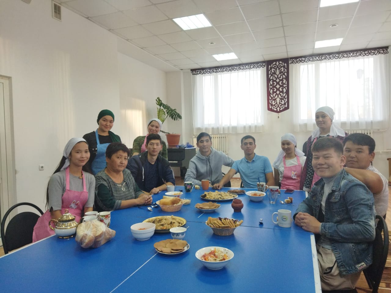 Көңілсіз берген қымыздан көңілді берген шай артық. Жапалап асқан жасықтан жағып жеген май артық. Қазақ халқы асқа, тағамға үлкен мән берген. Халқымыз кәделі әрі орны бөлек тағамдарын ет пен сүттен жасаған. Қымыз, шұбат сияқты шипалы тағамдар батыс елдерінде мүлде жоқ. Бұл – біздің халқымыздың ерекшелігі.Ұлттық дастарқанымызға байланысты алуан түрлі терминдер бар және олар зерттеуді қажет етеді. Бұл терминдер – бай қазақ тілінің және ұлттық мәдениетіміздің ажырамас бір бөлшегі. Сондықтан біз оны білуіміз және сақтауымыз қажет. Жатақханамызда «Аспаз үйірмесі»өте ерекше ынтамен өтеді.Қыздарымызға жасалатын тағамдар жайында толық түсінік беріліп,сол тағамдарды жасалу барысында түсінік берілді. Дастарханға қойылған тағамның қалай пісріліп дайындалғаның, сүйкімділігі мен дәмділігінің айрықша маңызы бар. Сүйкімді әрі дәмді даярланған тағам көзді қызықтырып қана қорймайды, тәбетті шақырып, асқазанға шырын бөледі, сөйтіп тағамды қорытатын ішкі жүйенің барлығы асты «қабылдауға» дайын тұрады. Тағам ауызға түсісімен-ақ, ас қорытатын ағзалар дереу қызметке кіріседі, соның нәтижесінде белоктар, майлар, көмірсулар жақсы сіңеді.Бүгінгі біздің дайындаған тағамымыз палау және шәйға тәтті панкики.