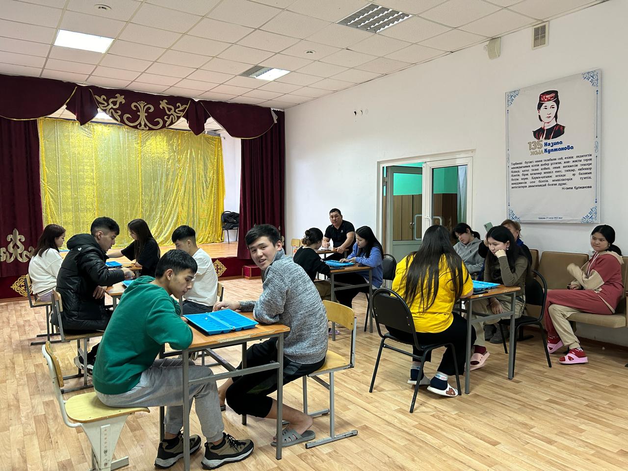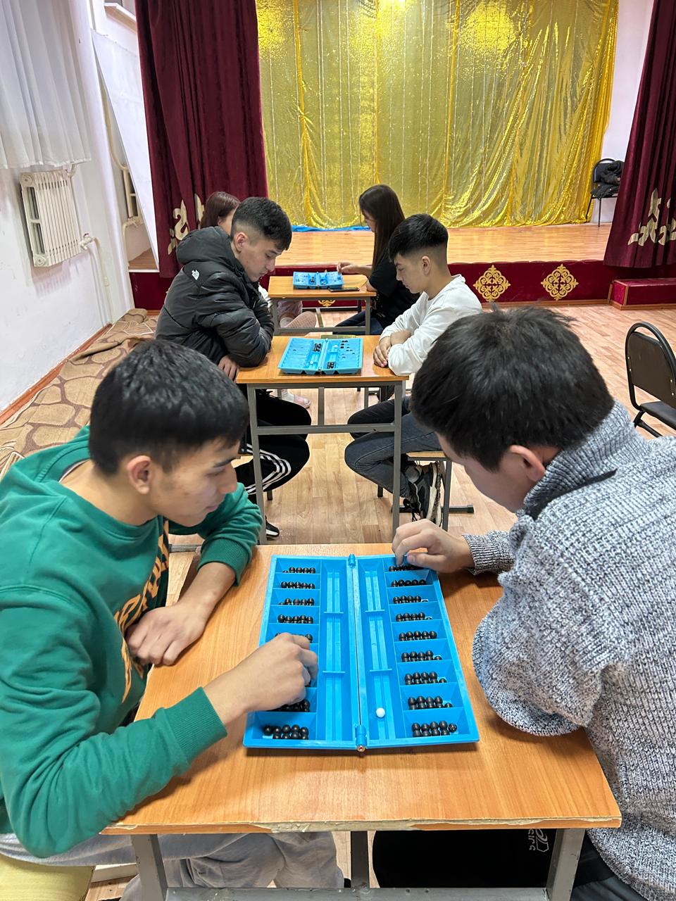 Традиционно каждые семь дней среди студентов общежития проводится спортивное мероприятие. На этой неделе состоится одна из национальных традиционных игр казахов, умственная игра – Тогизкумалак. В конкурсе приняли участие 15 девочек и 10 мальчиков. Всего приняли участие 25 студентов. В результате среди девочек 1 место Сабит Арт. Группа БМ 22 2 место Кабдуахит Гульнар, группа БМ 11. 3 место Кырыкбай Джазира группа БМ-12. Среди мальчиков 1 место Байситов Али Муз-2 группа. 2 место Валихан Жанузак ДМ группа 22. 3 место Адильхан Нурмухаммед ДМ 11 группа. Эти студенты были выбраны из числа лучших и награждены дипломами. Организатором мероприятия выступил учитель физкультуры и спорта: Мухамеджанов Багдат Бакитжанович!