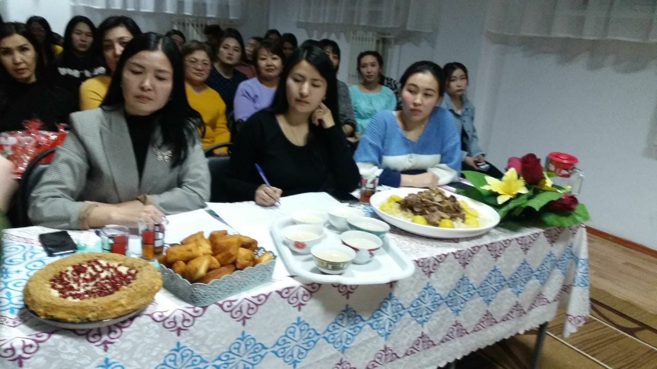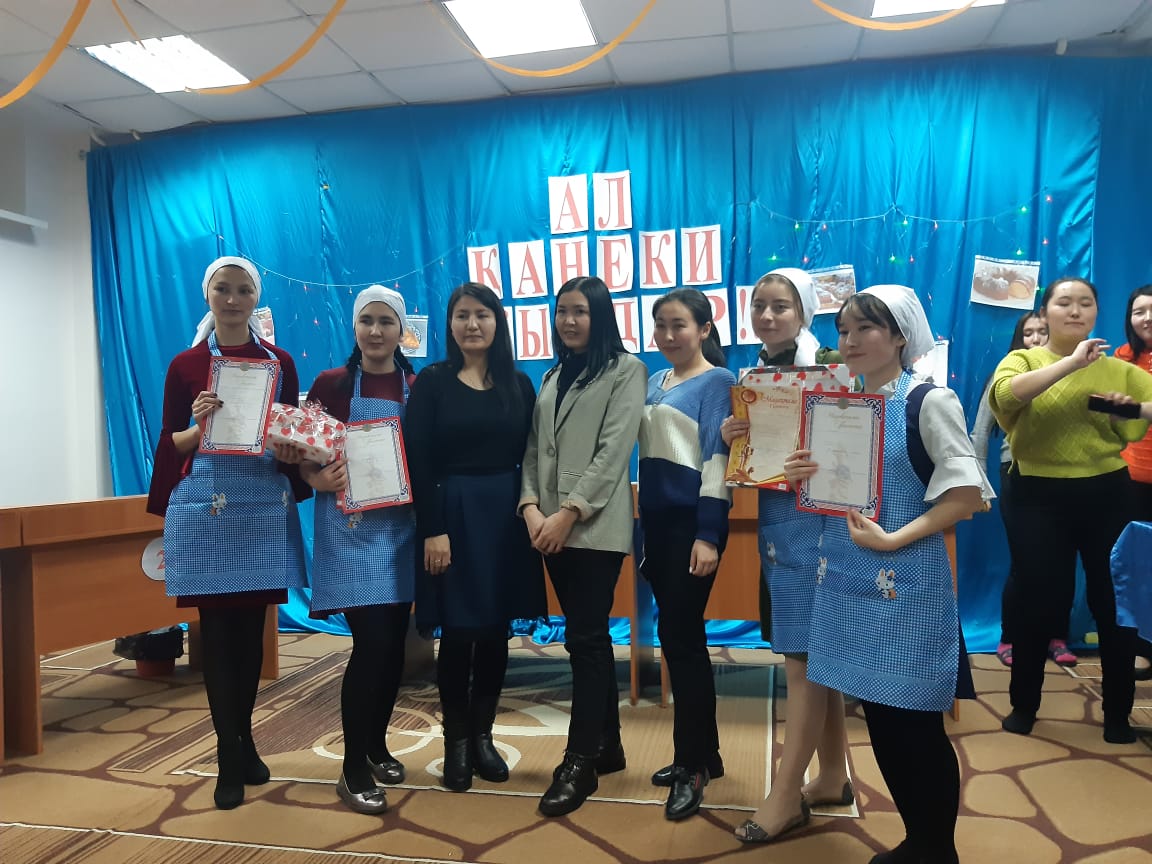 В общежитии Торгайского гуманитарного колледжа имени Н.Кулжановой действует несколько кружков, один из которых кружок «Повар». Главная цель кружка: научить будущих хозяек к культуре питания. Цель: дать представление о влиянии и пользе воспитания народа, о вкладе и особенностях воспитания нации. В общежитии колледжа был проведен конкурс «А ну-ка, девочки!" цель конкурса: ориентировать и развить у девочек желание, гибкость, талант. Перед началом соревнования мы избрали членов жюри. Один из них преподаватель английского языка и руководитель кружка «Повар» Мейрамова Бахыткуль Маратовна, преподаватель психалогии колледжа Издибаева Дарига Муратовна, член кружка «Повар», житель общежития Нагашыбай Самал, студентка группы МД-33.